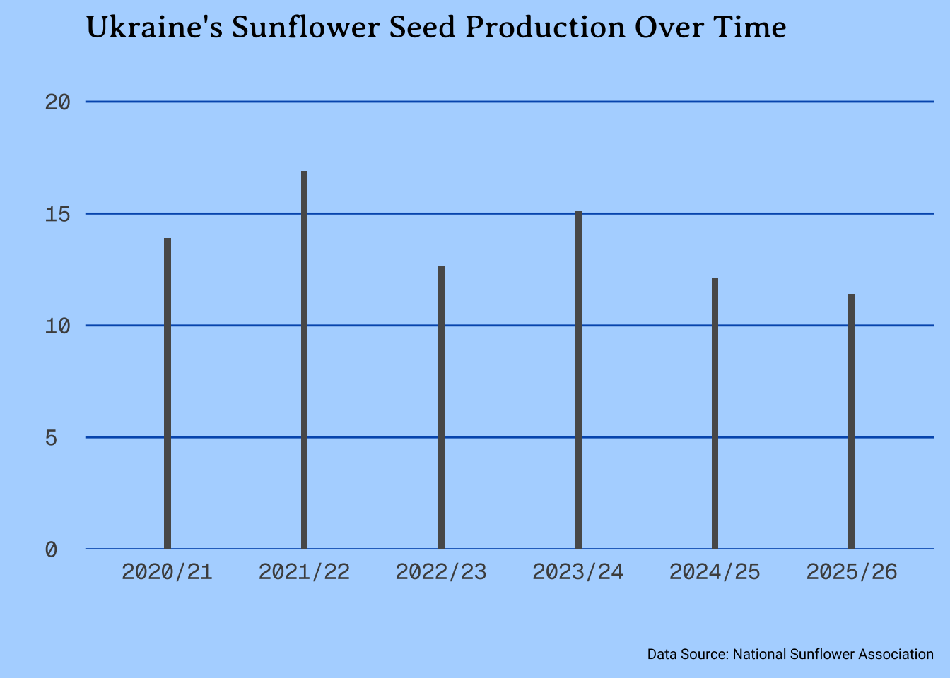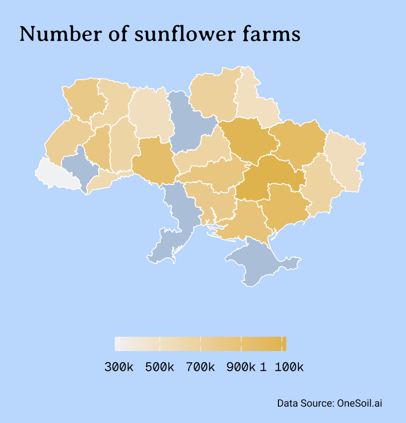 #subtitle = "There tend to be more sunflower farms in southeast Ukraine,\npossibly due to warmer climate.",