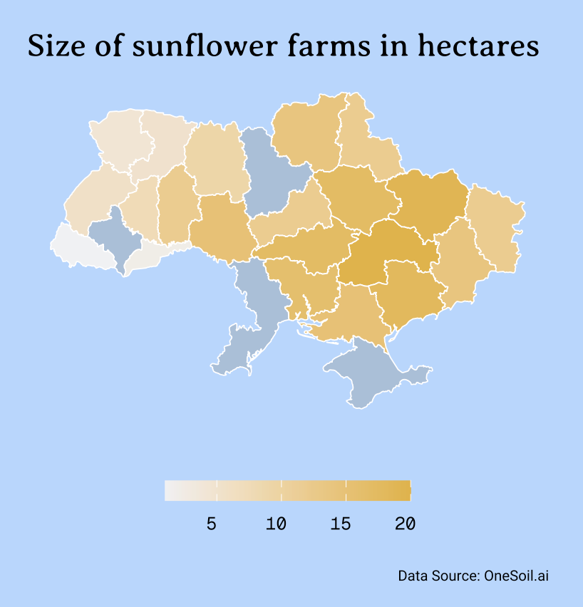 # subtitle = "Sunflower farms tend to cover more area in southeast Ukraine,\npossibly due to warmer climate.",