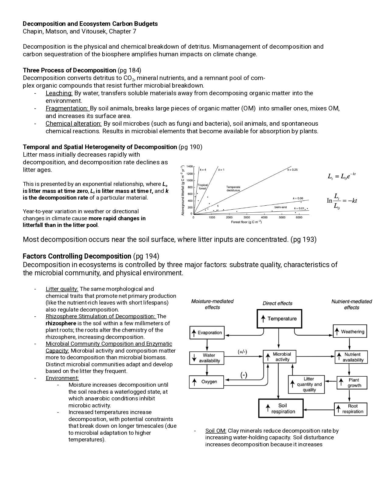 This review sheet was based on the decomposition and carbon budgets section (Chapter 7) of the textbook Principles of Terrestrial Ecosystem Ecology (Chapin, Matson, and Vitousek, 2011). Adam Oliphant and I were equal contributors.