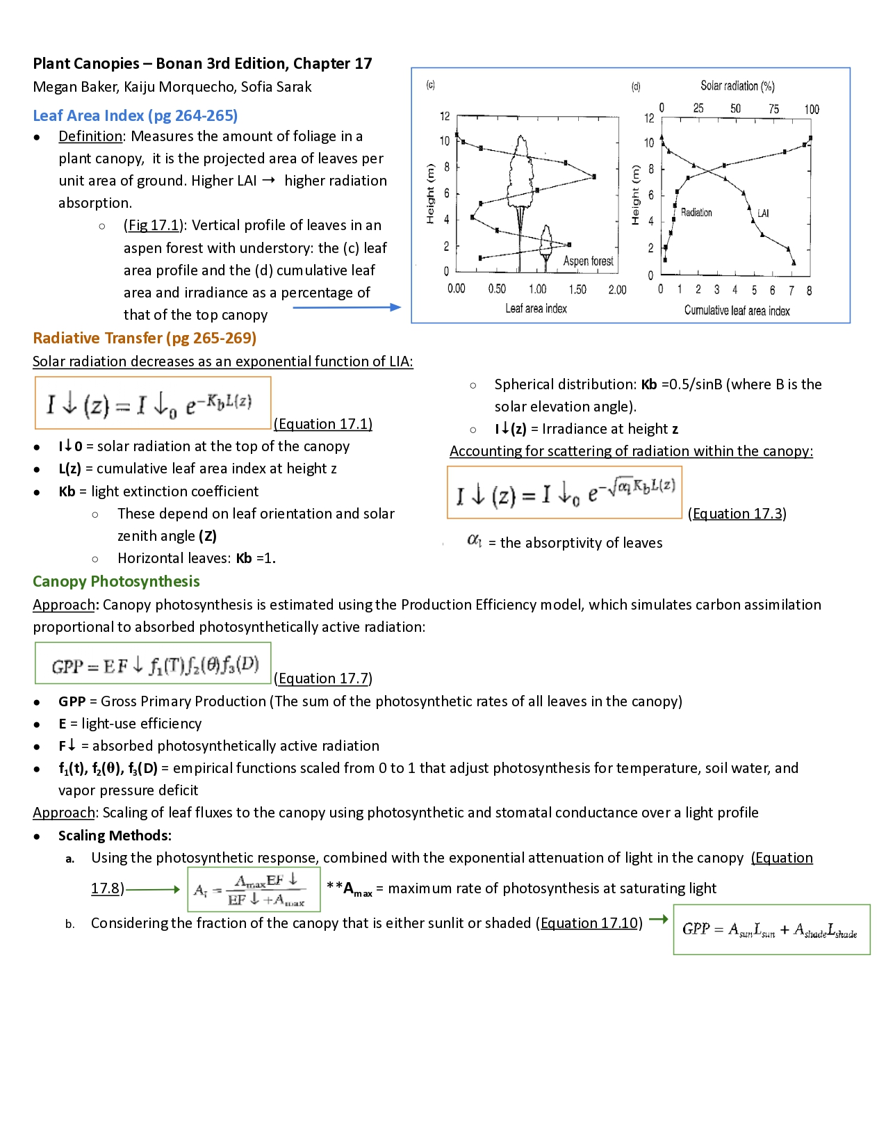 This review sheet was based on Chapter 17 (plant canopies) of Ecological Climatology (Bonan 2015). Megan Baker, Kaiju Morquecho, and I were all equal contributors.